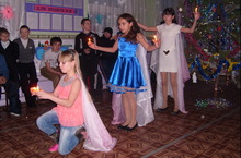 Весело прошел Новогодний бал- маскарад для учащихся 5-9 классов. Роль ведущих была распределена между классами. Каждый приготовил занимательные игры для гостей. Между классами организовали конкурс сценического номера. Ребята исполняли тематические песни и танцы. Больше всех понравилось выступление девочек 5 класса. Они исполнили красивый и оригинальный танец со свечками.