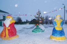 24 ноября учащиеся 8 и 9 классов с преподавателями построили красочные снежные фигуры. Снежный городок- это наше коллективное творчество