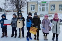 Акцию "Помоги птицам зимой" подхватили обучающиеся 1 класса. Смастерили вместе с родителями кормушки и скворечник.
