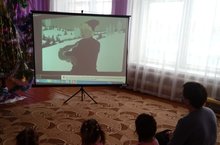 Возле праздничной ёлки просмотр мультфильма «По щучьему велению».
