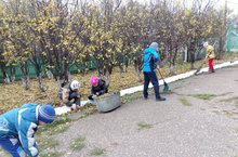 Сегодня в школе прошел субботник. Ученики 3-4 классов убрали территорию во дворе школы