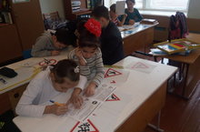 На очередном занятии кружка по БДД учащиеся знакомились с группами дорожных знаков в игровой форме.