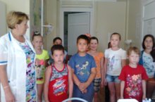 Сегодня был интересный день. Как всегда мы делали зарядку и трудились на пришкольном участке. Затем провели викторину «Безопасная дорога. Готовились к конкурсу «Безопасное колесо». Ходили в фельдшерский пункт и изучали вопросы по медицине. Дети задавали вопросы фельдшеру и сами отвечали на вопросы фельдшера. Учились накладывать шину, делать перевязку. Проводили эстафету на велосипедах. Ну и конечно же в такую жаркую погоду мы обливались водой, загорали на солнышке, ходили босиком по камешкам и песочку, так как наш девиз «Солнце, воздух и вода – наши лучшие друзья!»