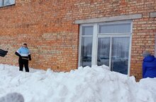 Сотрудники школы провели очистку отмосток от снежных заносов.