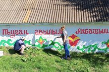 Мәктәп хезмәткәрләре Акбаш авылы төзелешләрендә орнамент яңарту өмәсенә чыктылар