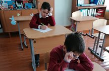 Сегодня учащиеся первого класса защищали проект под названием "Мой класс. Моя школа". На защиту проектов были приглашены воспитанники детского сада "Карлыгач". Ребята много узнали о школьной жизни своих старших товарищей. Они выразили свое желание в будущем обучаться в школе.
