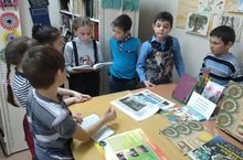 Сегодня библиотекарь Гибадуллина Г.Н. , в рамках Недели русского языка и литературы, провела для учащихся 1,3 классов внеклассное мероприятие на тему "Сказочные фразеологизмы". Учащиеся повторили значение термина "фразеологизм", вспомнили, какие бывают фразеологизмы, узнали, что означают такие сказочные фразеологизмы, как "по щучьему велению", "скатерть-самобранка" и т.д.