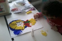 Библиотекарь Нурсаетова Л.Н. с учащимися 1 класса выполнили аппликацию из крепированной бумаги героя рассказа Н.Носова Незнайку.