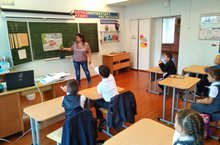 Бүген 1 сыйныф укучылары сыйныф җитәкчеләре Багаува Л.М. белән ветеран укытучылар - Хөснетдиновлар гаиләсендә кунакта булдылар. Алар өлкән укытучыларга үзләре ясаган сувенирлар бүләк иттеләр, кечкенә концерт куйдылар. Балаларга Наил Җәләй улы гармунда уйнады, үзенең күп еллар дәверендә эшләп алган грамоталарын күрсәтте, шул вакыттагы кызыклы вакыйгалар турында сөйләде. Нәфисә Фаиз кызы бик матур итеп җырлады, соңыннан кунакларны тәмле коймак белән сыйлады.