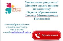 Уважаемые родители! Можете задать вопрос начальнику Отдела образования Гюзель Миннеяровне Гилязевой.