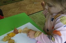 Вот и закончилось теплое,радужное лето! Пришла осень с холодными дождями,солнышко греет меньше.... С этих слов началось наше занятие и казалось, что осень самое печальное и невзрачное время года,но когда мы с ребятами начали вспоминать все признаки осени:сбор урожая,начался новый учебный год, и самое красивое,яркое явление листопад.И тут Рамазан вспомнил,что прошлой осенью мы собирали листья и заготавливали гербарий.Нам захотелось сделать подеку из этих заготовок.