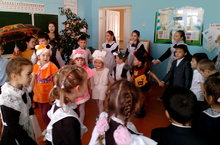 Бүген балалар бакчасының балалары башлангыч сыйныф укучыларының "Көз бәйрәме"ндә кунакта булдылар.Балалар үзләре белән күчтәнәч тә алып бардылар.Алар А.Алишның "Койрыклар" исемле әкиятен сәхнәләштереп күрсәттеләр.