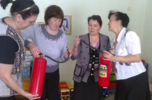 сотрудников.С сотрудниками повторили правила пользования средствами огнетушения, научили детей как пользоваться огнетушителями.