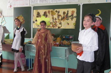 Учащиеся начальных классов организовали выставку из прродных материалов "Композиции осени". Учитель начальных классов Садыкова Фаниса Фанисовна подготовила и провела с учащимися 4 класса внеклассное мероприятие "Алтын көз". Дети показали музыкальное представление и организовали веселые игры для 1-3 классов.