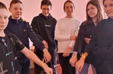 На большой перемене была проведена акция «Дарю тебе радость», во время которой дети дарили друг другу яркие ленточки, сопровождая их объятиями.