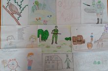 Башлангыч сыйныф укучыларының М.Җәлил иҗаты буенча рәсемнәреннән күргәзмә куелды.