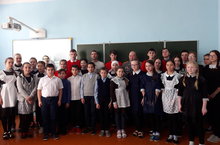 Сегодня в школе провели дублер-шоу. Участники: отряд юнармейцев и полковник в отставке Хайруллин Сирин Миннехаерович. Юнармейцы побывали в ролях "президента РФ, главы РТ, главы района, поселения".