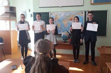 16 марта учитель истории Касимова С.Ш. с учащимися 9-11 классов провела классный час «День воссоединения Крыма с Россией». Ученицы 11 класса рассказали об историческом воссоединении Крыма с Россией, а также о его значении для судьбы страны.