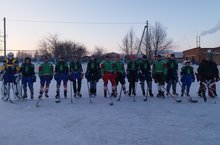 Мәктәп укучылары һәм авыл яшьләре һәркөн боз мәйданчыгында хоккей уйныйлар.