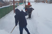 Көрәкләр белән коралланган тимурчылар ялгыз әбиләрне, мөмкинлекләре чикләнгән авылдашларны кар көртләреннән коткаралар. Бүген алар ветеран педагог Галиева Халисә апаның йорт тирәсен кардан тазарттылар.