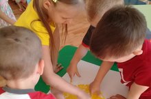 Расширили с детьми представление о пользе и вреде солнца, побеседовали на тему " Как вести себя в жару на участке", а еще рисовали солнышко при помощи пальцев, используя нужные цвета и передавая летнее настроение.