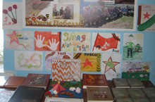 Библиотекарь школы Каримова З.М. организовала выставку книг, детских рисунков к Акции "Пароль Победа"!