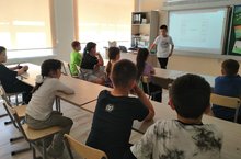 Классная встреча ученика 6 класса Артура Гатченко с учащимися 2 класса. За успехи в учебе, победы в конкурсах Артур был награждён путевкой в лагерь "Орлёнок".