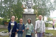 Обучающиеся начальных классов с руководителем Ерофеевой Т. П. посетили мероприятие, посвященное 224 дню рождения А.С. Пушкина в Районном доме культуры. Дети отгадывали загадки, слушали стихотворения, а после мероприятия возложили цветы к памятнику Пушкина.