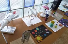 Выставка поделок и рисунков к 60-летию полёта Ю.А.Гагарина в космос. Учитель технологии Евтюхина Г.В.