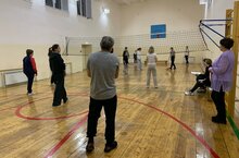 Учитель физической культуры Краснов А.Н. в рамках работы школьного спортивного клуба ведет внеурочные занятия по пионерболу
