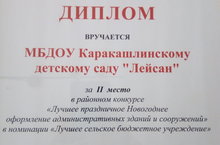 Районный конкурс "Лучшее праздничное Новогоднее оформление административных зданий и сооружений" в номинации "Лучшее сельское бюджетное учреждение" , 2место.