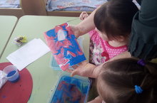 Балалар белән бергәләп эбру техникасын кулланып кышны тасвирладылар.