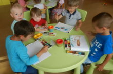 Бу көнне балалар белән бергәләп рәссамнар көне үткәрдек.Рәсем ясар өчен предметларны карадык, төрле алымнар белән ясап карадык, тәрбияче апаның хәрәкәтен күзетек(Что получится из кляксы).Дидактик уен"Таны, бел, нәрсә белән ясалган"