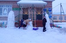 "Ләйсән" балалар бакчасында хезмәткәрләр, әти-әниләр ярдәме белән кардан сыннар ясадык.