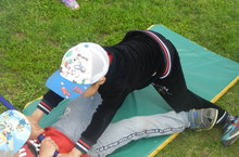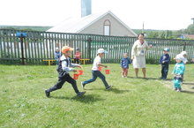 Балалар белән бергәләшеп Сабантуй бәйрәмен үткәрдек.Төрле уеннар уйнадык чиләкләр белән су ташыдык. чүлмәк ватылыш, аркан тартышлы, капчык киеп йөгердек.Балалар рәхәтләнеп уйнадылар.