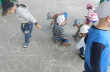 Балалар төсле акбур белән асфальтка рәсемнәр ясадылар. Бу шөгыль балаларга бик ошады.