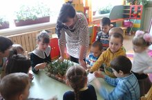 Балалар ел саен февраль аенда тәрбияче апалары белән башлы суган утырталар һәм су сибеп, үскәнен күзәтәләр.