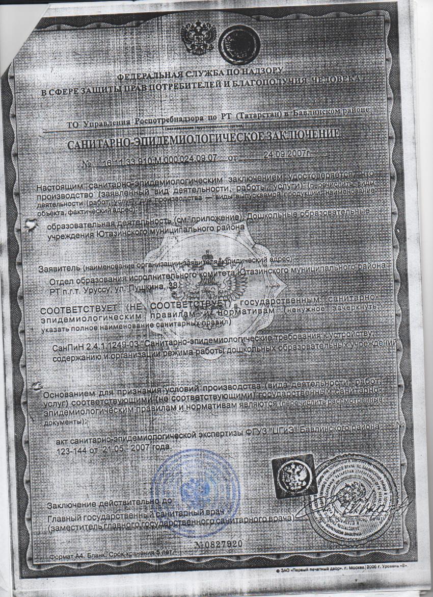 Санитарно-эпидимиологическое заключение