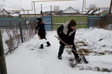 Отряд волонтёров оказал помощь пожилому ветерану, труженику тыла Гайсину А.Г. Ребята расчистили двор от снега.