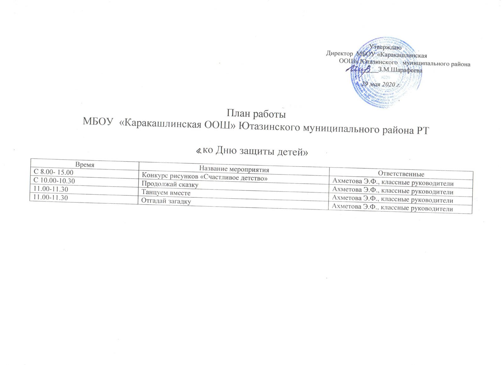 План мероприятий, посвященных Международному дню защиты детей/ Балаларны яклау көненә багышланган чаралар планы 29.05.2020