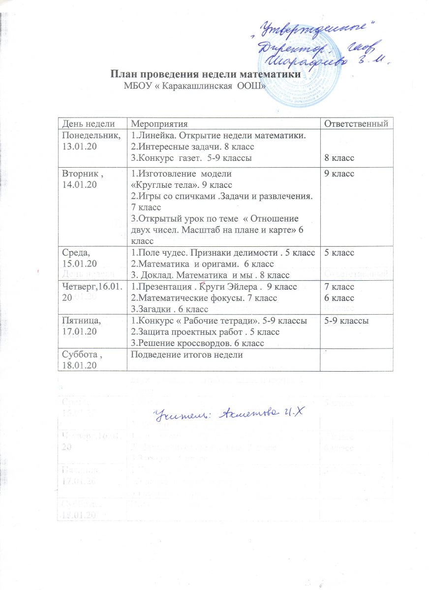 Гыйнвар аена эш планы/План работы МБОУ “Каракашлинская ООШ” на январь