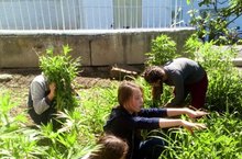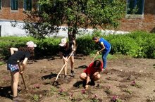 Сегодня воспитанники лагеря труда и отдыха «Җәйге ял» занимались прополкой цветника на пришкольной территории, полили рассаду.
