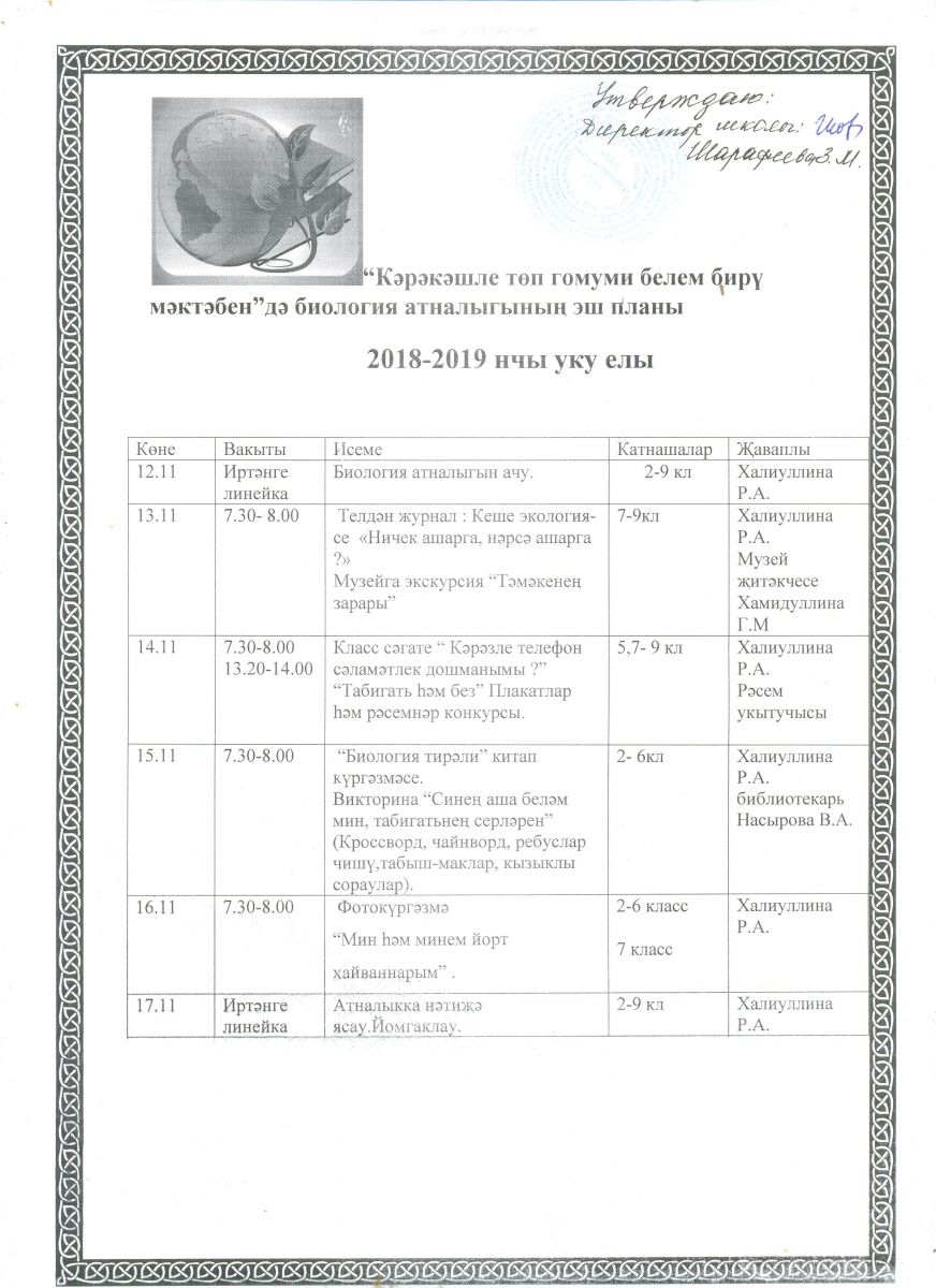 - Биология атналыгының эш планы 12.11.2018