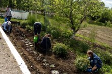 Под руководством педагога школьники работают на грядках и в цветниках.