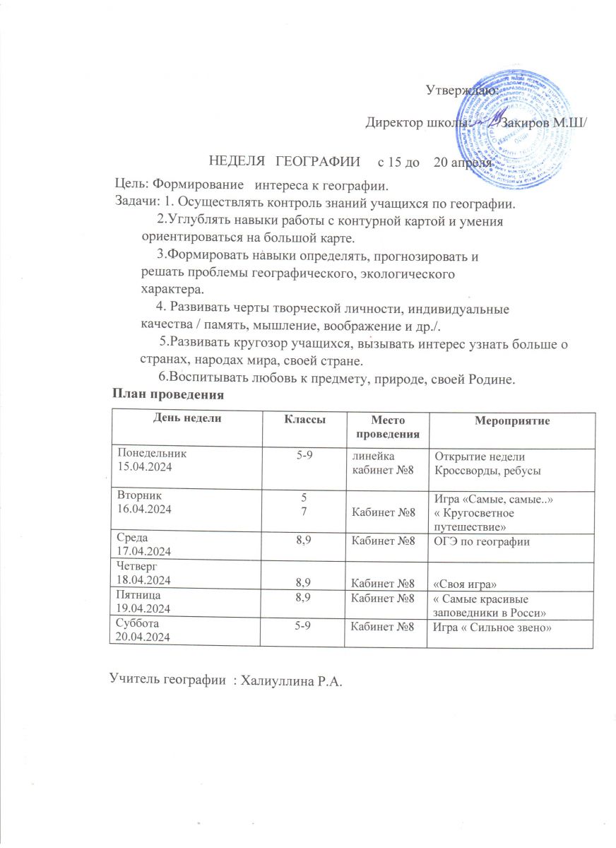 Для учащихся 7-го класса была проведена развлекательная игра "Кругосветное путешествие". Она построена на вопросах общей эрудиции, программных вопросах курса географии 7 класса. Ребята работали с картой мира: находили острова, материки, проливы, заливы, горы и озера. За каждый правильный ответ ученики получали жетоны. Победителем этого мероприятия стала Галиуллина А.