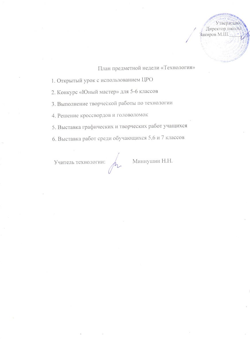 План недели технологии/Технология атналыгы планы 29.01.2024