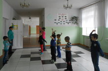 1.Балаларны кабул итү. Сәламләү. Тезелү. Разминка.Кур-