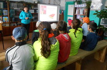 Бүген "Кояшкай"ял һәм хезмәт лагерендә ял итүче укучылар көндәлек планнда каралган эшләрдән тыш авыл китапханәсендә кунакта булдылар. Китапханәдә экология елы уңаеннан "Кызыл китап"ка кертелгән хайваннар һәм үсемлекләр турында сөйләделәр.Балалар сөйләшелгәннәдән чыгып асфальтка рәсемнәр ясадылар һәм татлы призлар оттылар.