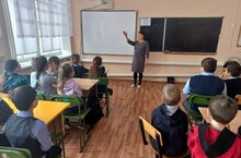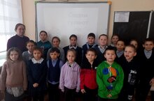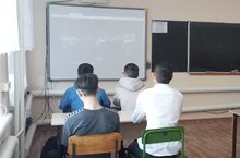 Ученики 3-4 и 9 классов за просмотром фильмов "Живой город" и "8 марта".