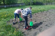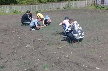 Воспитанники лагеря провели "Трудовой десант" по благоустройству школьного огорода: освободили грядки от сорняков, полили цветы.